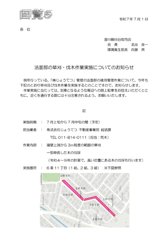 4.じょうてつ法面草刈りをします。