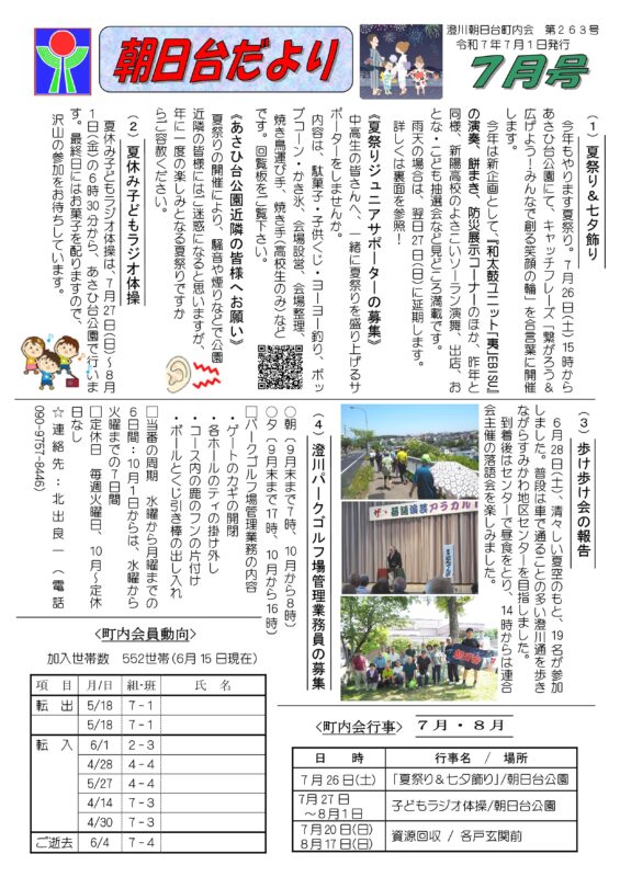 1.朝日台だより7月号を発行しました。