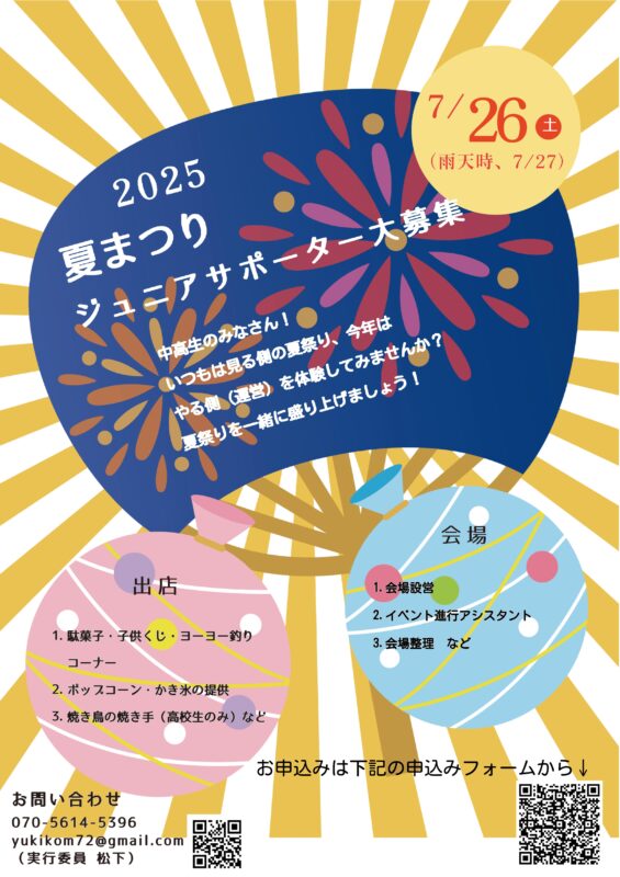 2.夏祭りのジュニアサポーターを募集しています。