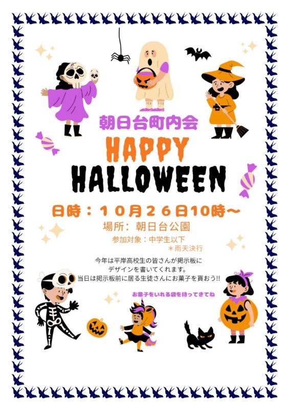 3.ハロウィン 10月26日(日)10時 朝日台公園集合