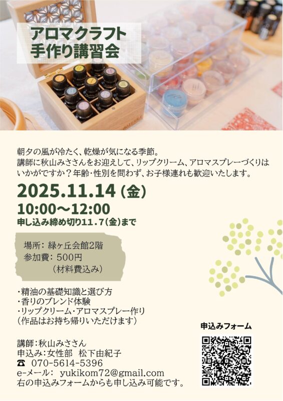 4.女性部手作り講習会「アロマクラフト」11月14日(金)10時緑ヶ丘会館